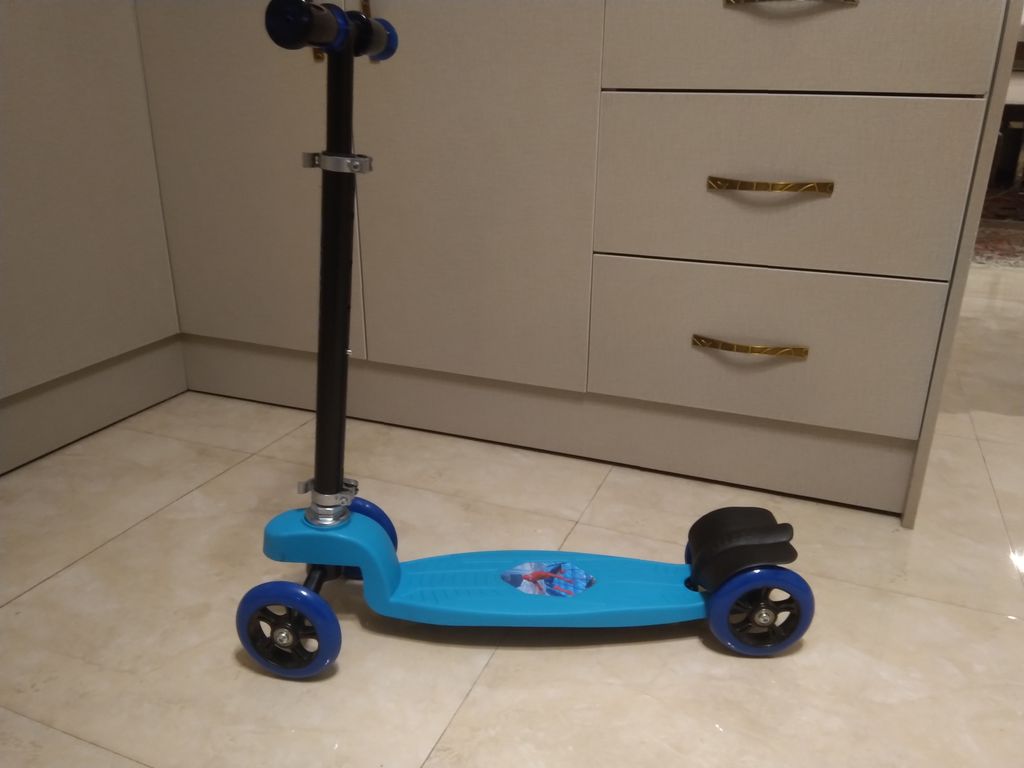 اسکوتر کفی فایبرگلاس و قابل انعطاف دارد ؛ لاستیکای تماما ژلاتین و تنظیم دسته تا ۴ لول